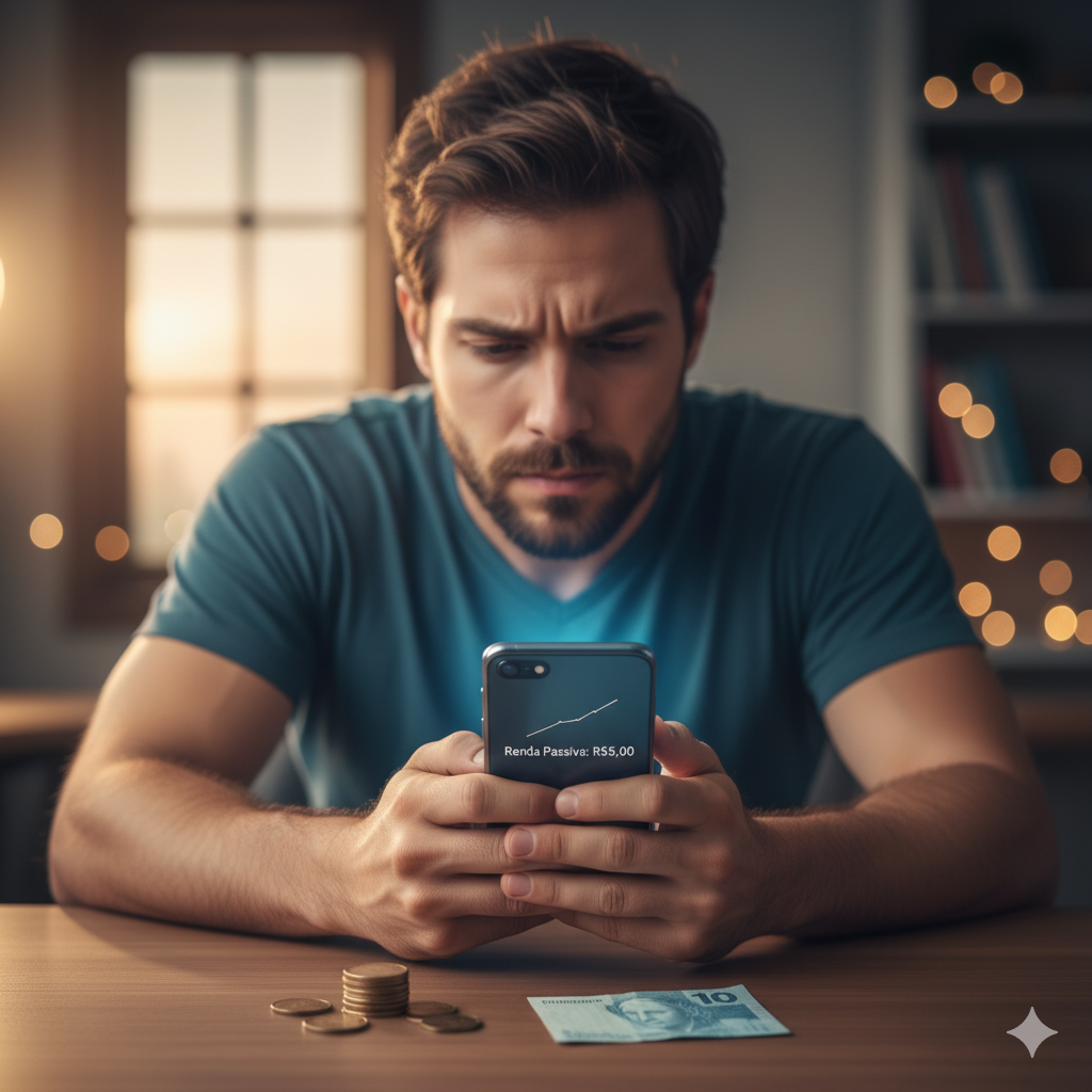No mês seguinte, talvez venham R$ 7,00. No outro, R$ 6,50. Isso não parece nem de longe o sonho da renda passiva que te venderam. Parece mais um esforço inútil. E assim, silenciosamente, o projeto de “viver de renda” é engavetado.